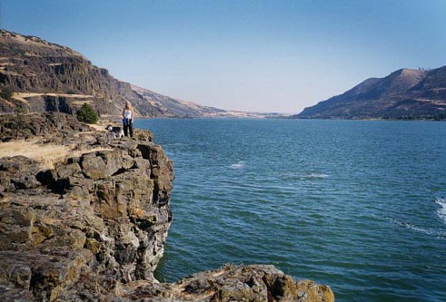 The Rocky cliffs of the Columbia that the fishing platforms are built