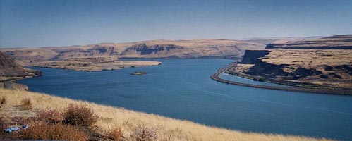The view West downstream toward the town of Maryhill from the Sam Hill