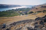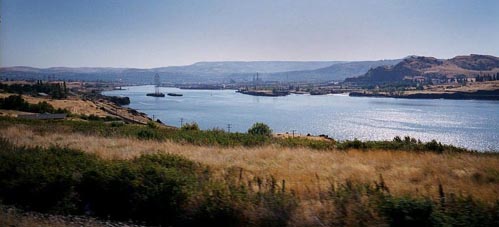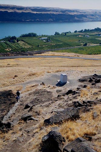 town of The Dalles is visible in the distance. The site on which The Dalles